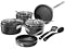 - Set includes: 8 in. Frying Pan, 2.75Qt. Saucepan with Glass Lid, 3.5-Qt. Saucepan with Glass Lid, 10 in. Frying Pan, 5.35-Qt. Stock Pot with Glass Lid, & 2 Utensils