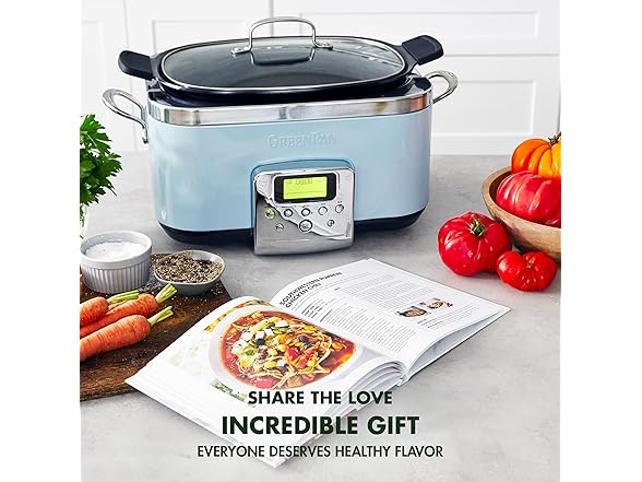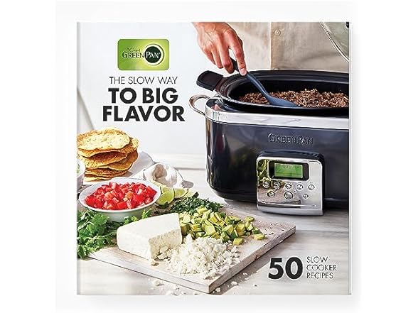 GreenPan Elite Electric Slow Cooker Cookbook, Hardcover, 50 Simple Step Recipes, Breakfast Lunch Dinner Dessert Meals, Quick Easy Tips