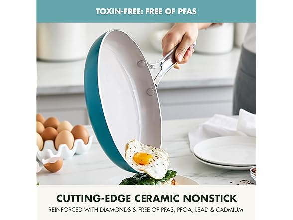 - TOXIN-FREE: GreenPan's Thermolon healthy ceramic nonstick coating is free of PFAS, PFOA, lead, and cadmium.