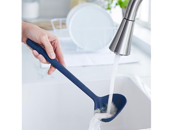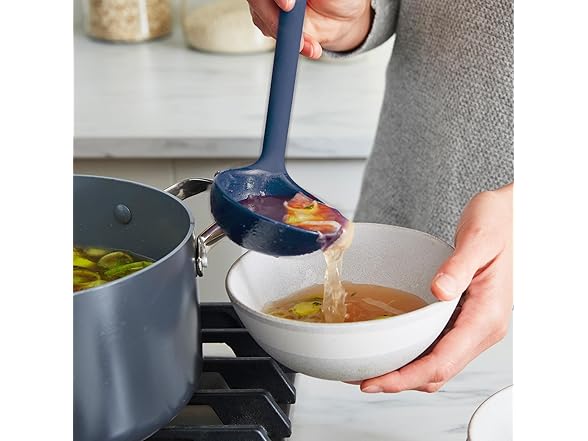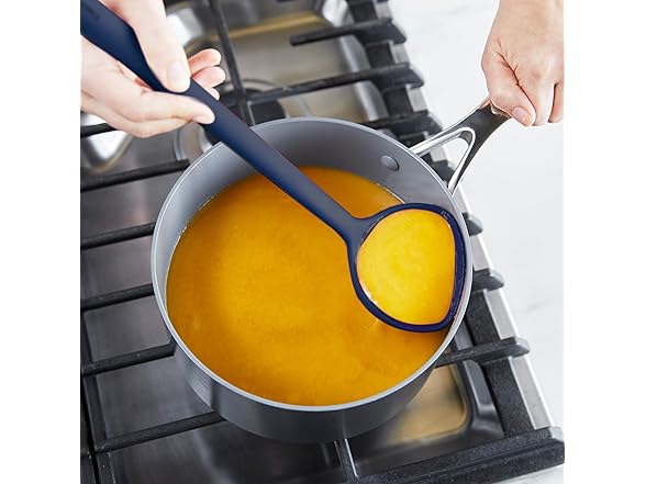 GreenPan Silicone Ladle, Soup Mixing Stirring Serving, Cooking Kitchen Utensil, Flexible Rubber Nonstick Cookware, Rigid Steel Core, Heat-Resistant, Anti-Slip Handle, BPA-Free, Dishwasher Safe, Blue