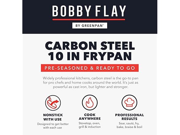 - BOBBY FLAY X GREENPAN: Chef Bobby Flay, known for his love of carbon steel cooking, has teamed up with GreenPan to create an innovative collection for pro-level home cooking.