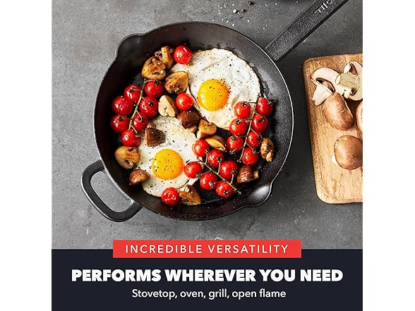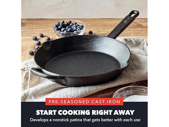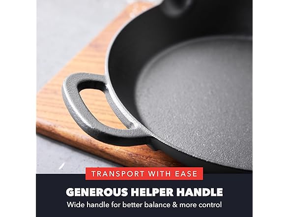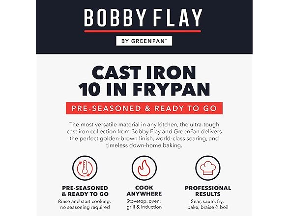 GreenPan x Bobby Flay 10” Cast Iron Pre-Seasoned Skillet with Helper Handle, Professional Grade Heavy Duty, Induction, Pour Spouts, Versatile Stovetop, Oven, BBQ Grill Fire, Indoor/Outdoor Use, Black