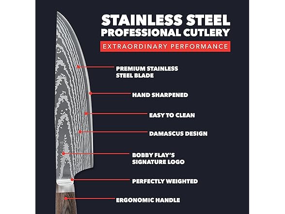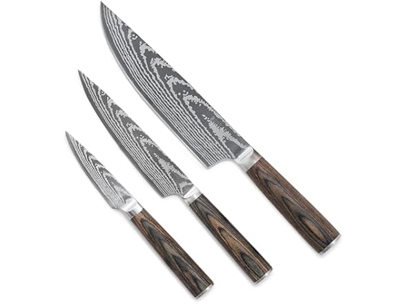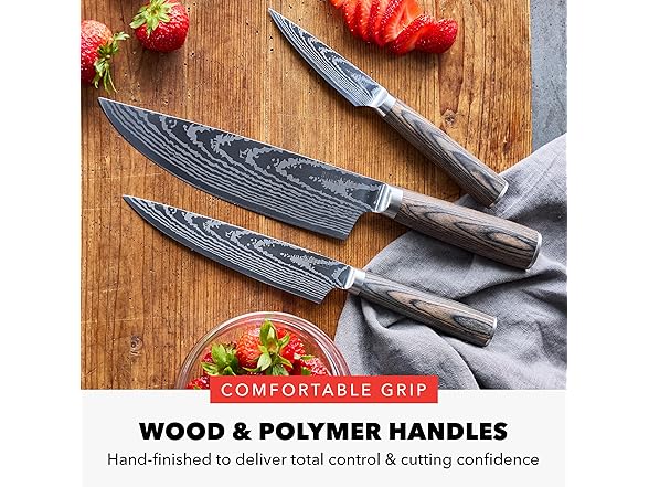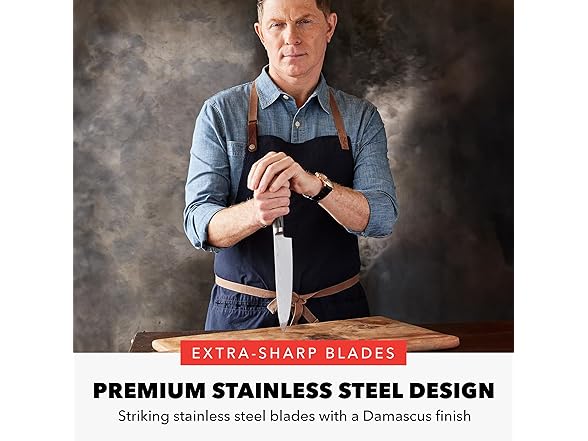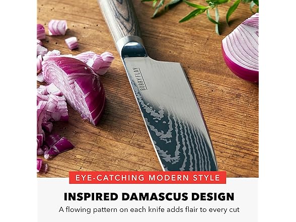 - PREMIUM STAINLESS STEEL BLADES: A Damascus steel design and extra-sharp edges make these knives ideal for a huge array of tasks