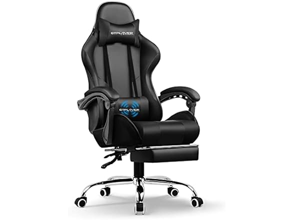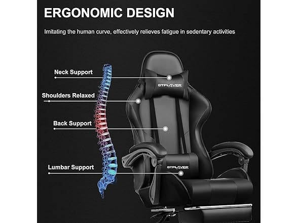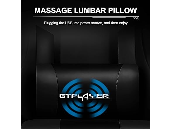- Most Comfortable And Relaxing: Equipped with headrest and massage lumbar pillow.When your neck feels sore from gaming or working with head down for a long time,the headrest will relieve your fatigue.When tired from maintaining a same sitting posture,please rest assured to lean back and charge your waist pillow,it will relax your tired waist energetically.