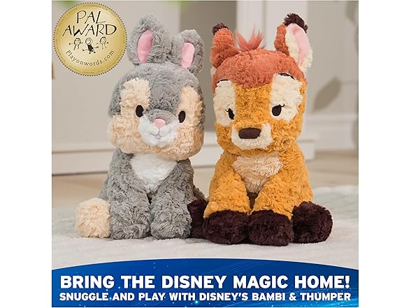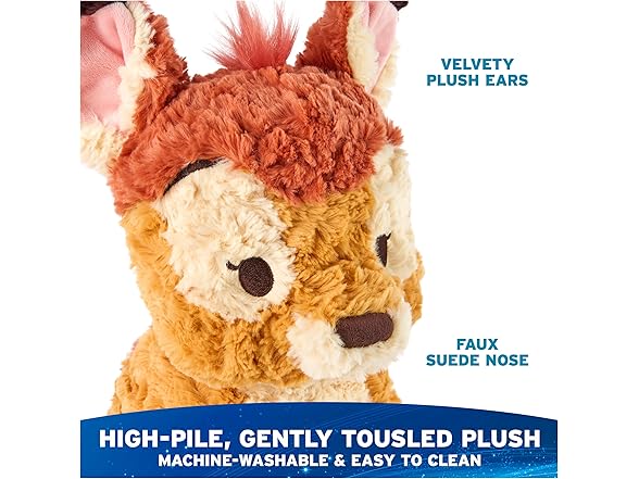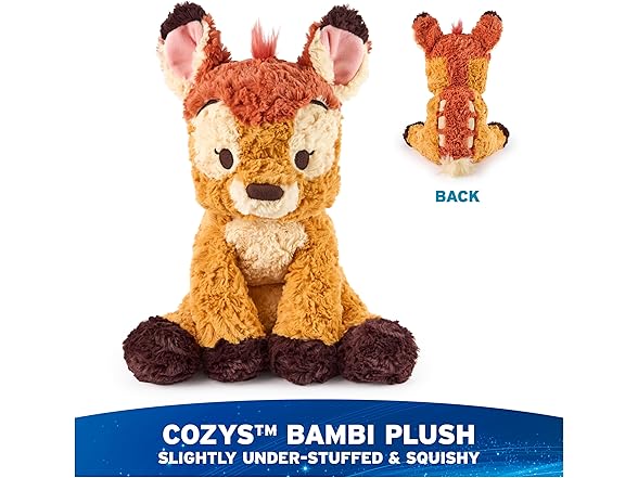 - DISNEY’S BAMBI PLUSH: This iconic baby deer sits 10” tall and features soft, floppy limbs with a slightly under-stuffed body that makes every squeeze feel even sweeter. Bambi also has soft chestnut plush, a fluffy tail, and a faux suede nose