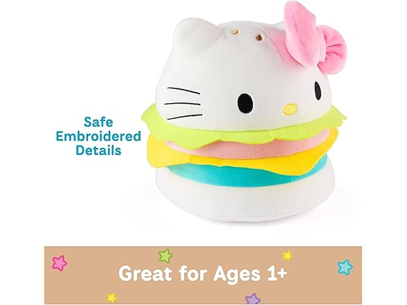 - Includes: 1 GUND Sanrio Hello Kitty Hamburger Plush, Poly Bag
