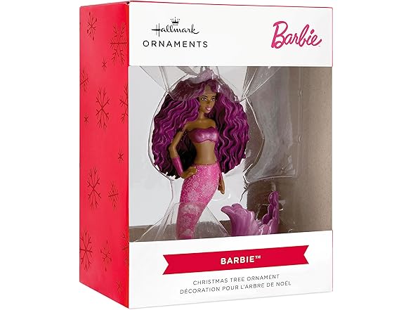 - Make a splash this holiday season with this Hallmark Christmas ornament featuring a Barbie Mermaid with wavy purple hair and a sparkling hot pink tail.