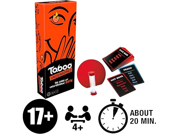 - SERIOUSLY, THIS TABOO GAME IS NOT THE ONE FOR KIDS: This Taboo Uncensored game for ages 17+ puts the "forbidden" in forbidden words for a hilarious adults-only game that will reveal a lot about your friends. Maybe too much