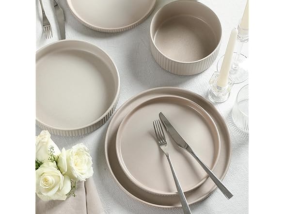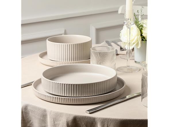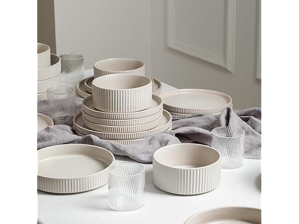 Stone Lain Haven Modern Stoneware 4 Piece Pasta Bowl Sets, Dish Set for 4, Reactive Glaze Beige