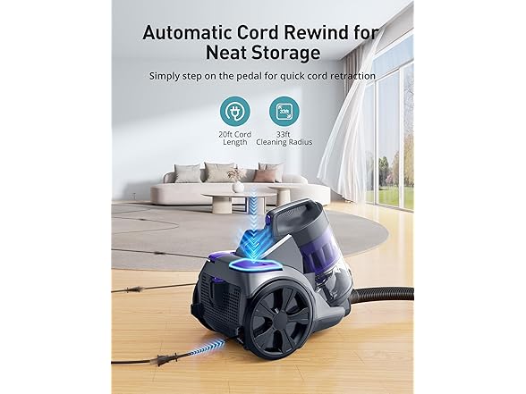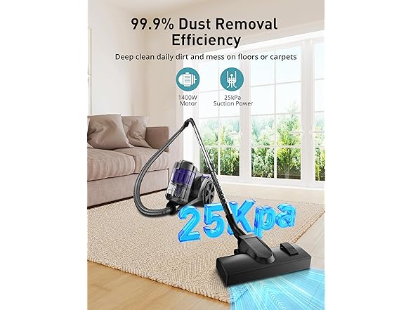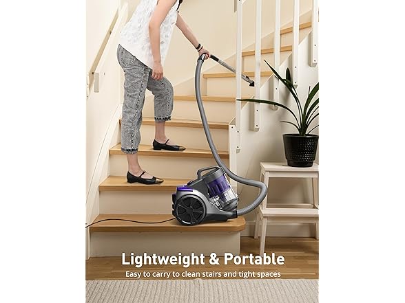Canister Vacuum Cleaner, 1400W Bagless Vacuum Cleaner, Multi-Cyclonic 5 Stage Filtration, 2 Anti-Allergen HEPA Filters, 3.5QT Dust Cup, 4 Tools, Corded Vacuum for Hard Floor, Carpets, Pet Hair, Purple