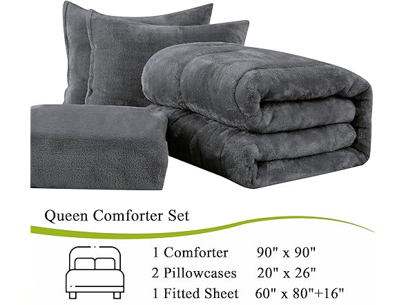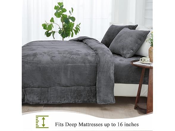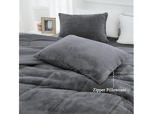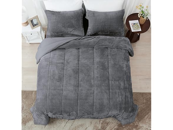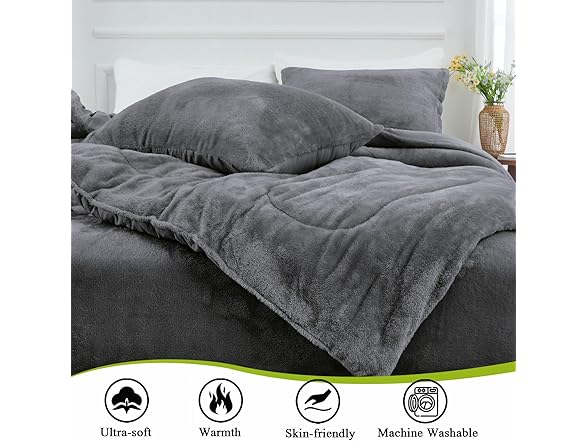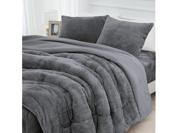 HCORA Dark Grey Faux Fur Comforter Set Queen