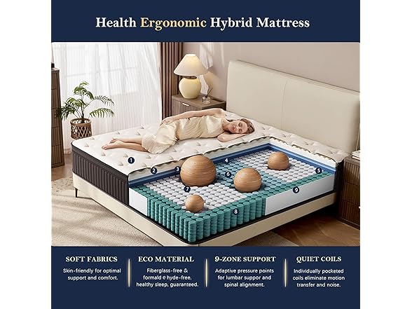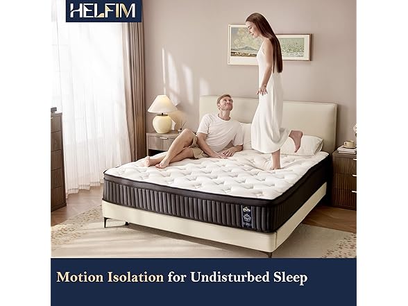 HELFIM 12 Inch Mattress - Hybrid Medium Firm Feel with Pocket Springs, Breathable Memory Foam for Spine Support & Motion Isolation - CertiPUR-US Certified