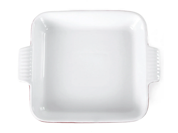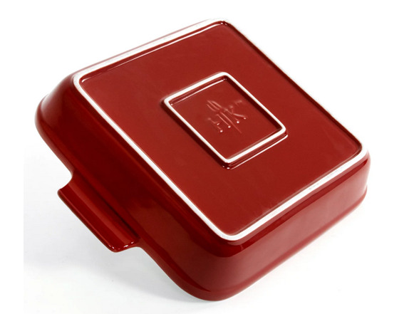 - With a stunningly fiery yet understated look that will garner plenty of compliments from dinner guests, this high-quality and durable piece of bakeware features a dramatic Hell's Kitchen red exterior that is perfectly offset by a creamy white interior. The look is so appealing that it conveniently allows for both baking and serving from the same dish. This professional-grade baker dish will make a perfect, top-tier addition to any kitchen.