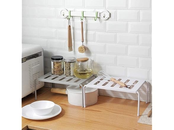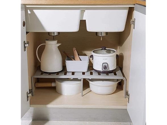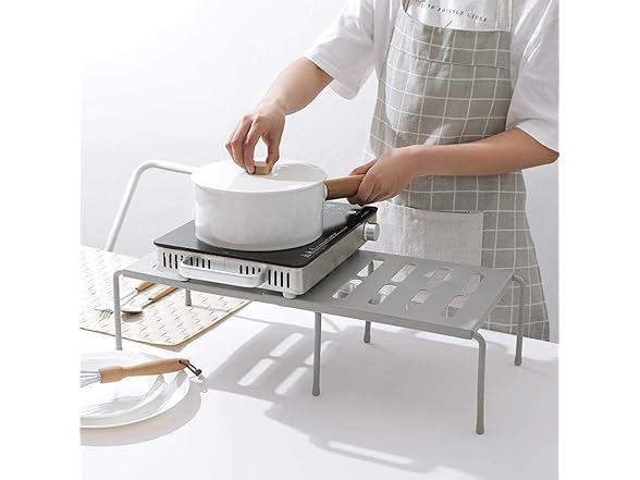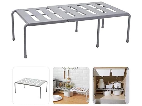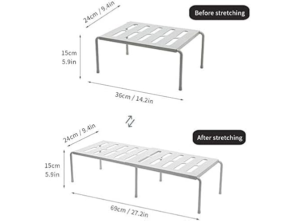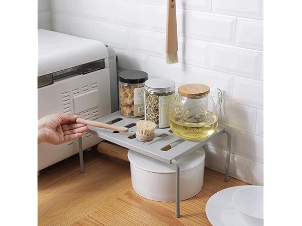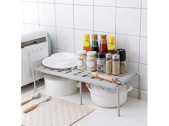 Hetrfly Expandable Cupboard Shelf, Kitchen Shelf Organiser Multi-Function Shelf Organisers for Kitchen Storage, Bathroom Storage, Makeup Storage, Desk, Grid Design can Drain - Gray