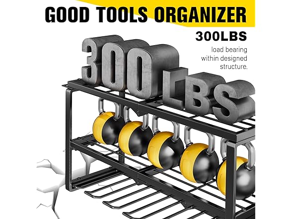 - 300 lbs Load: The 3 tier tool organizer wall mount is made of heavy compact steel metal for greater weight capacity and durability. After load-bearing testing, the utility racks can support up to 300 pounds on sturdy walls.