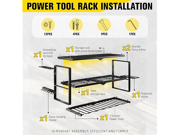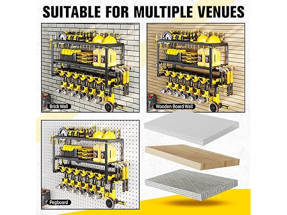 - Easy to Install: Our power tool organizer wall mount includes all necessary mounting hardware and clear instructions for easy installation. refer to the professional installation manual, you can assemble a perfect tool rack wall mount in just a few minutes.