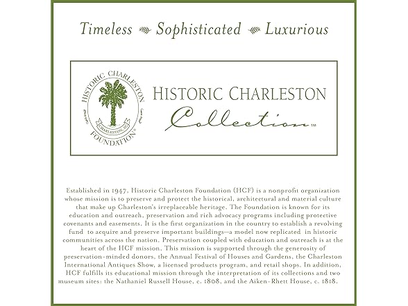 - BEAUTIFUL DESIGN – Based off designs from Historic Charleston's rich heritage, the lovely King Charles collection portrays rolling arches, half-moons, double diamonds, and scrolling vine details wrapped around classic topiary, pheasant, sun, and pineapple motifs