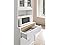 Hodedah Long Standing Kitchen Cabinet with Top and Bottom Enclosed Cabinet Space, One Drawer, Large Open Space for Microwave, White