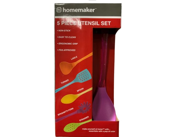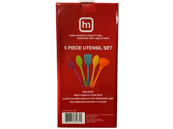 - (1) 5 Piece Colorful Kitchen Utensil Set
