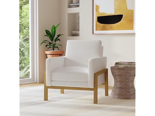 HomePop Wood Frame Accent Chair | Homepop Home Decor | Accent Chairs for Living Room & Bedroom - Cream Boucle
