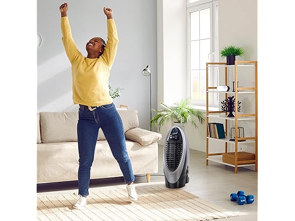 - Powerful Portable Cooling: Portable air cooler has 2.6-gallon water tank for easy cleaning & refilling with a convenient digital display, carbon dust filter, and energy-saving timer