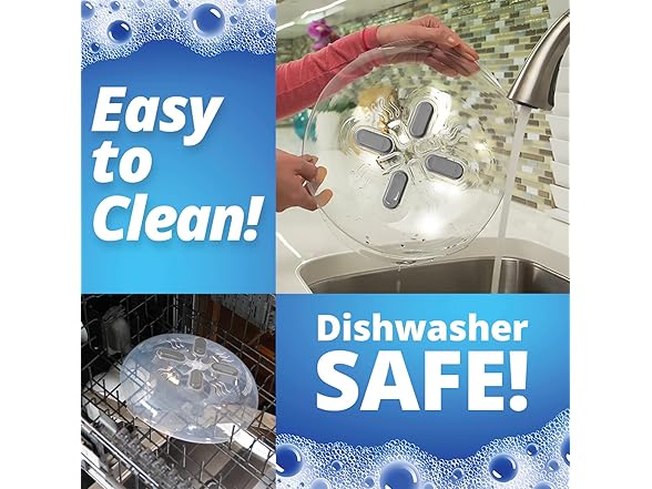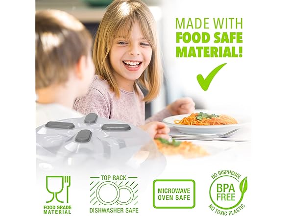- SAFE, DURABLE, & BPA-FREE MATERIAL – Crafted from BPA-free materials, this microwave splatter cover withstands temperatures up to 300°F. Fully tested to meet safety standards, it’s patented design ensures a secure, reliable fit for every use. Safe for the entire family, it’s the perfect solution for food protection in your microwave.
