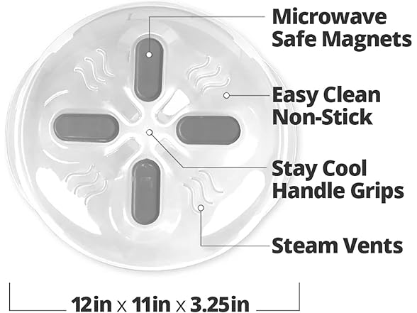 - MAGNETIC STORAGE & EASY ACCESS - The HOVER COVER Magnetic Splatter Cover, measuring 12 inches x 11 inches x 3.25 inches, features microwave-safe magnets that securely attach to the microwave ceiling, offering space-saving storage. No more misplacing your microwave lid! Simply pull it down when needed and place it back after use, keeping your microwave clean and organized for easy access. An excellent gift for anyone who uses a microwave.