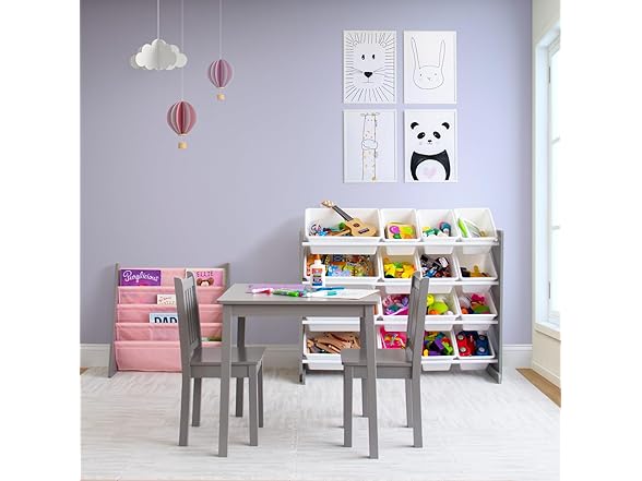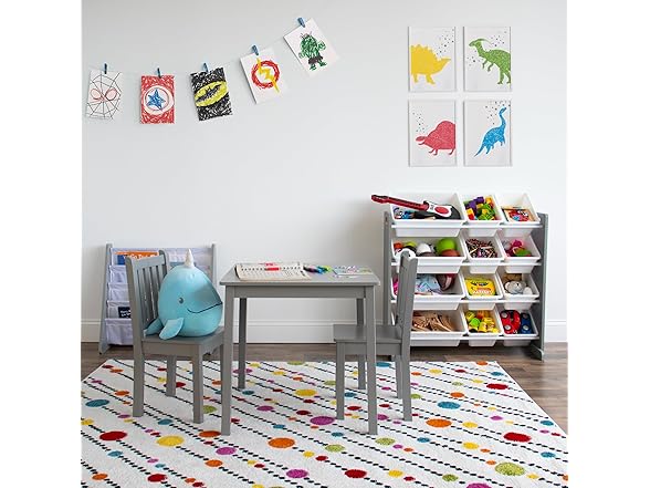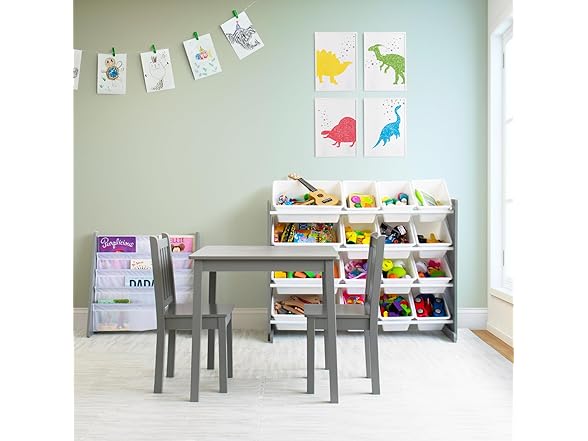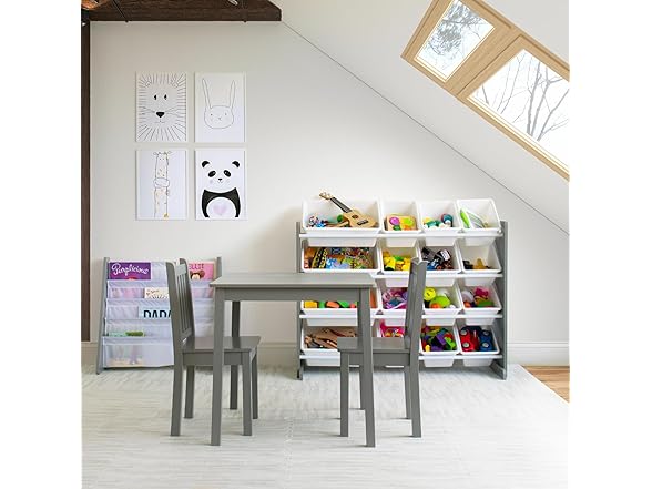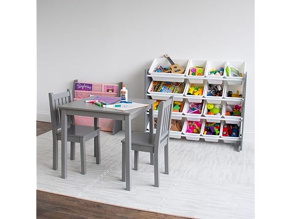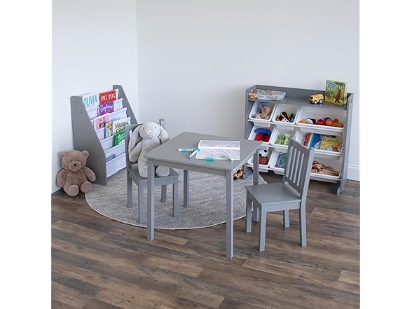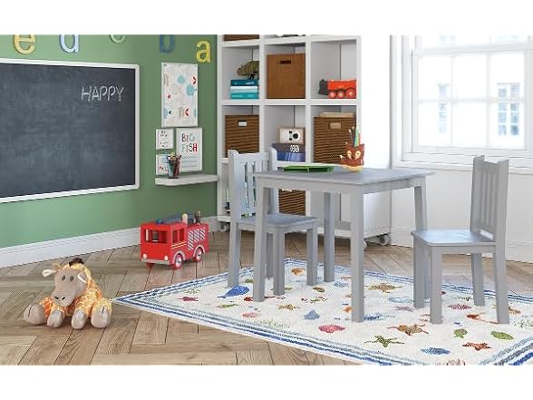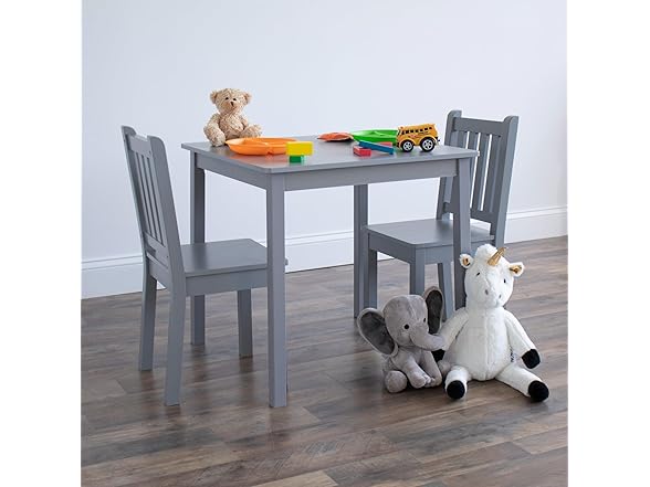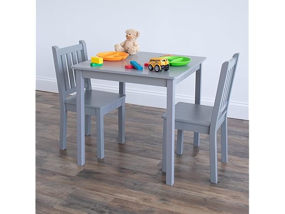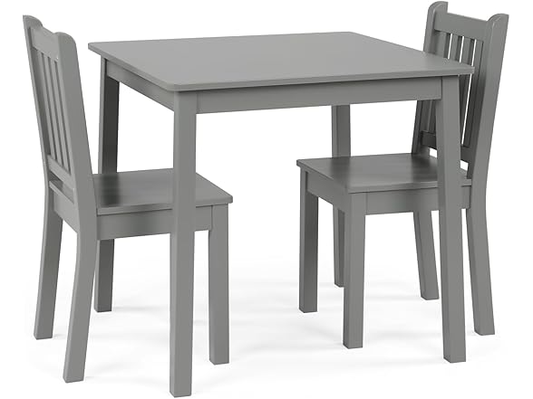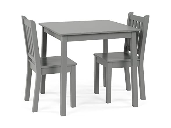 Humble Crew Kids Wooden Table and 2 Chairs Set, Grey - Square Kids Table and Chair Set for Toddlers and Children for Arts, Crafts, and Snack Time - Sturdy, Durable Toddler Activity Table
