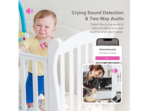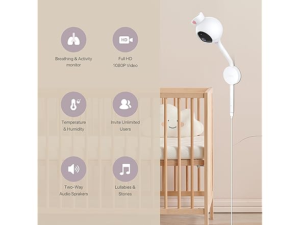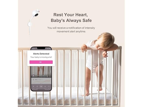 - 【Movement Alerts & Two-Way Audio】: Never miss a moment with Movement Tracking that sends alerts for any pause or weak movement. Speak and listen to your baby with crystal-clear Two-Way Audio, soothing them with your voice from any room.