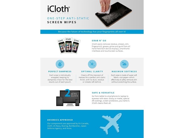 - | SELECTED, APPROVED AND USED DAILY | iCloth approved by equipment manufacturers and customers in Aviation, Healthcare, Hospitality, Education, Law Enforcement, Tech, Military and more. Over 200,000,000 of our cleaning wipes have used on computer displays, touchscreens, phones and lenses