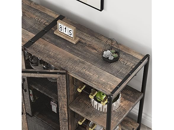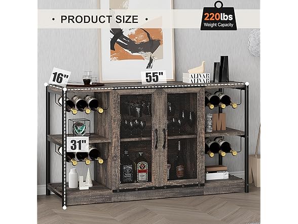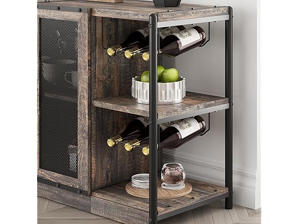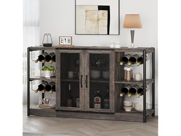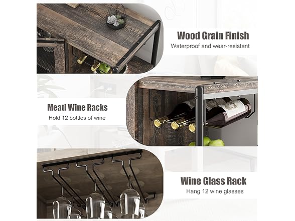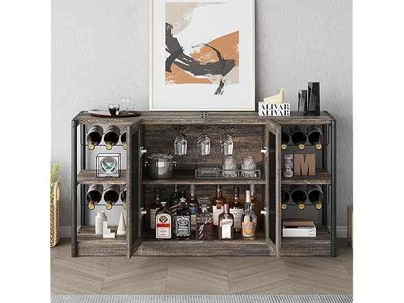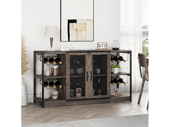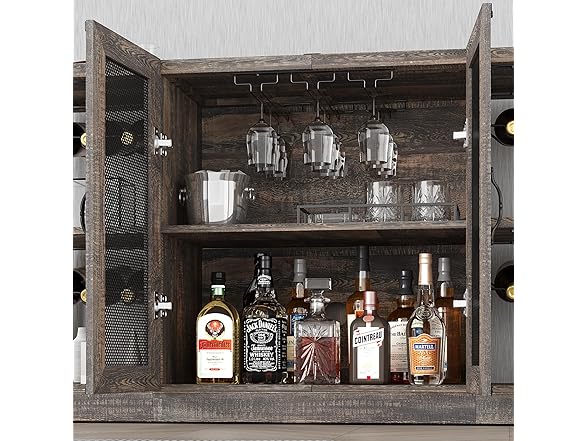 IDEALHOUSE 2024 New Wine Bar Cabinet – Industrial Liquor Cabinet with Storage and Wine Rack – Elegant and Practical Dark Oak Color Home Bar Furniture for Dining Room, Living Room, Kitchen