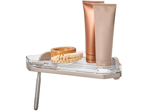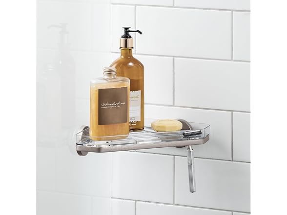 iDesign Self-Adhesive Corner Shower Shelf with Razor Holder - Satin