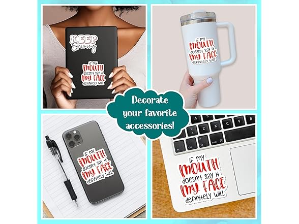 (3Pcs) If My Mouth Doesn't Say It My Face Definitely Will Sticker Funny Quote Sarcastic Decals Waterproof Vinyl Sticker for Books Laptops Phone Water Bottles Tumbler Cup Kindle 3 Inch