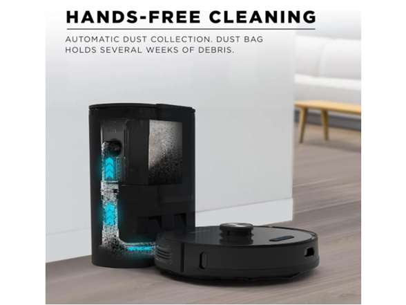 After cleaning, the Nova intelligently navigates back to the Auto Empty Base to automatically empty the dustbin contents and recharge. The bag lined bin holds weeks worth of debris so you don' t have to!