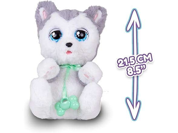 - Interactive Plush: The Husky is a Food Lover. He can't resist a good cookie or a biscuit