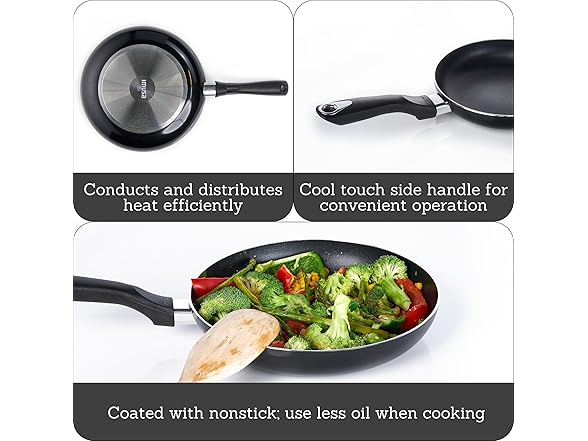 - COMFORTABLE AND CLEANING: Featuring a cool touch handle for comfortable handling and a nonstick surface for effortless cleanup, this pan provides a user-friendly cooking experience and reliable performance