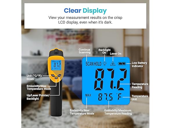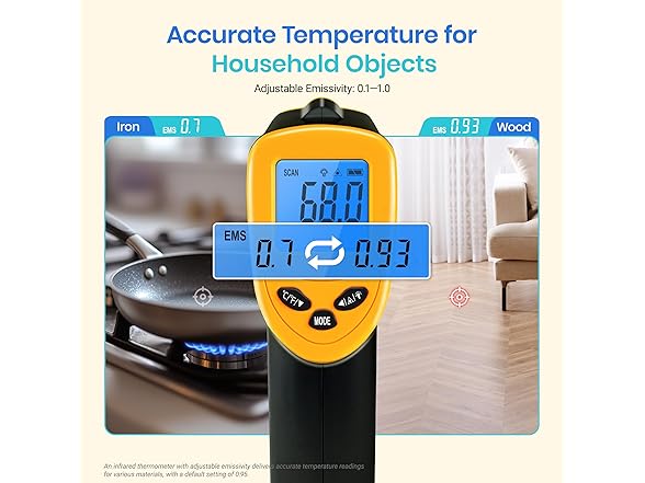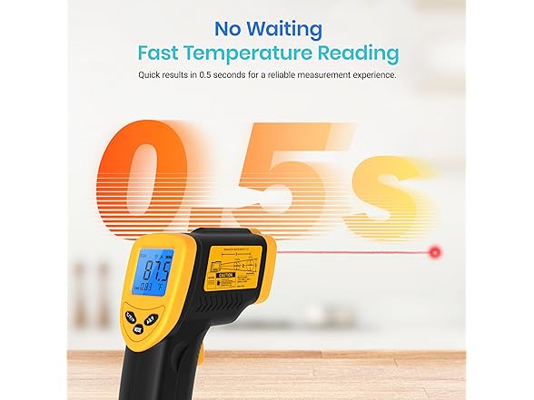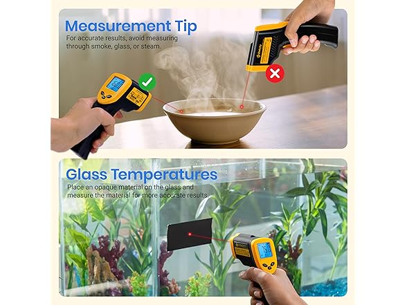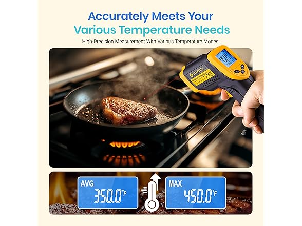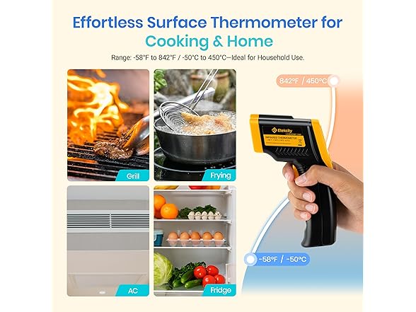 (1, 2, OR 3 Pack) Etekcity Infrared Thermometer Laser Temperature Gun 774, Meat Food Candy Oven Thermometer for Griddle Accessories, Heat Gun for Cooking Refrigerator Tools, Yellow