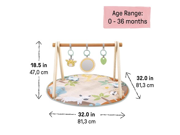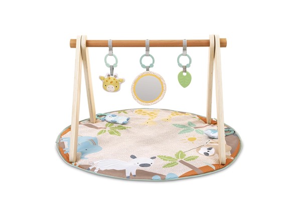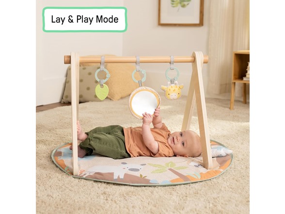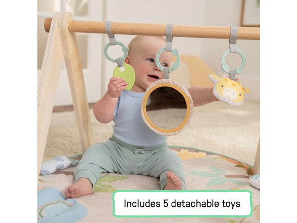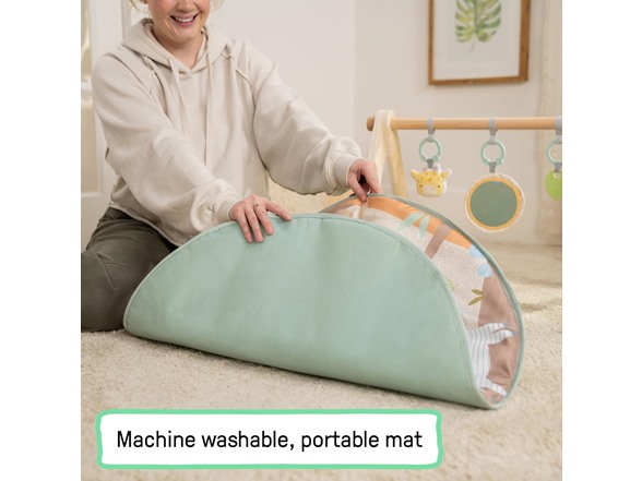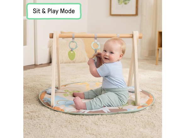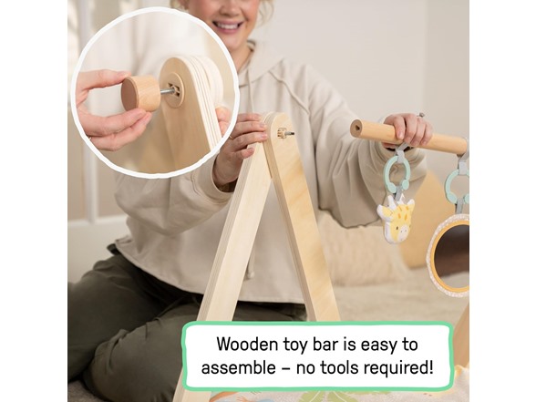 Ingenuity Wonder & Wood Baby Play Mat & Wooden Toy Arch, Play Gym for Baby, Foldable A-Frame Bar with 3 Removable Toys, Machine-Washable Mat, for Ages 0-36 Months