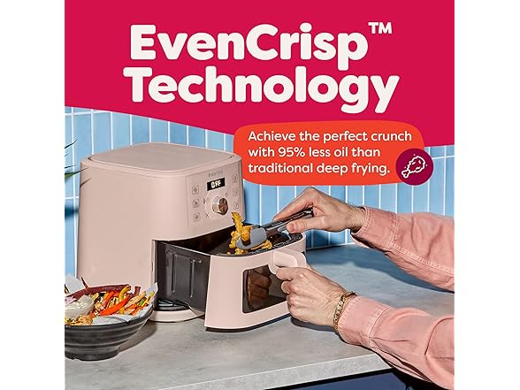 Instant Pot 4Qt VORTEX 6-in-1 Mini Air Fryer, Custom Program Options, Air Fry, Broil, Roast, Dehydrate, Bake, Reheat, Rosewater, 4 Quarts