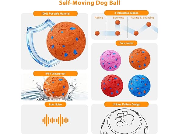 Self-Moving Dog Toy with Auto-Rolling & Bouncing