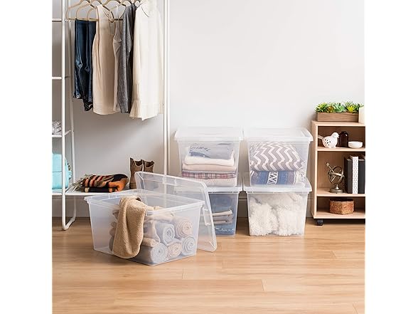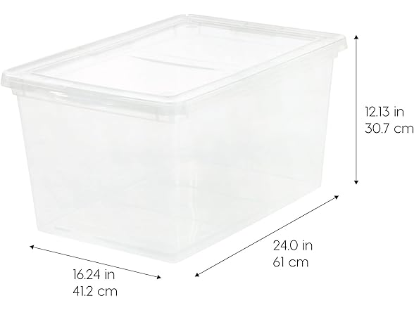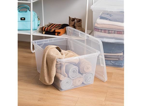 IRIS USA 4-Pack Storage Bins with Lids, 58 Quart, Clear Stackable Containers Box Organize Shoes Closet Shelves Clothes Blankets Towels - BPA-Free Plastic