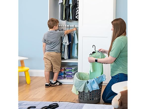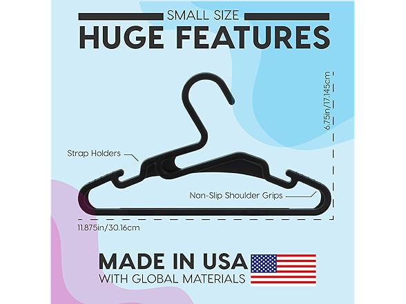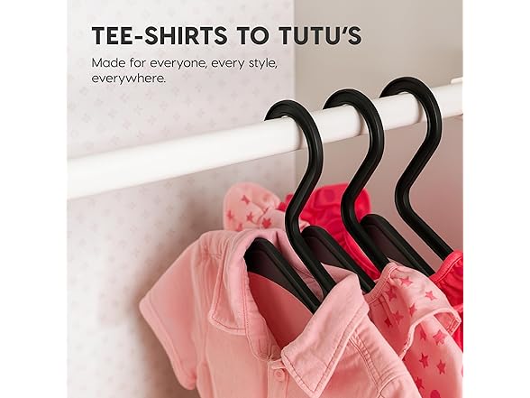 IRIS USA Extra Small Hangers 50 Pack, 11.87" W x 6.75" H, Clothes Hangers with Shoulder Grooves, S- Shaped Design, for Shirt Dress, Durable Flexible, Space Saving Laundry Room Closet Organizer, Black