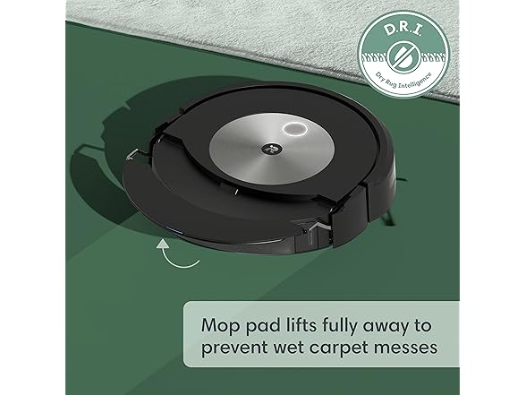 • MOPS THE FLOOR, KEEPS CARPETS DRY. - Only from iRobot, your carpets stay dry with D.R.I. (Dry Rug Intelligence): The Roomba Combo j7 plus robot and Auto-Retract Mopping System lift the mop high away from carpets