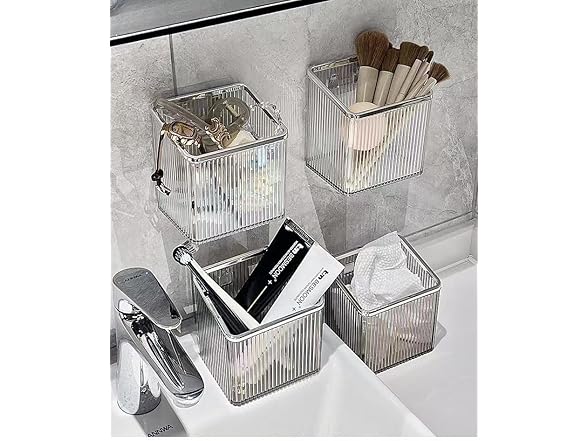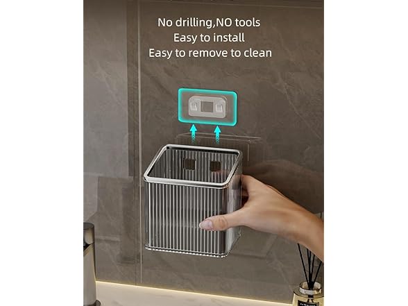 - 4.Adhesive wall mounted toothbrush holder for bathroom, powerful and easy to install.Dimension:4.4" Lx 3.7" Wx 4.6" H, Help save space on counter, You can not only use this toothbrush holder for bathroom used as electric toothbrush, toothpaste, toothbrush,shaving foam, facial cleaner, mouthwash,electric shaver,razor holder,but also storage small items,such as makeup brush,comb, eyebrow trimmer, lipsticks, remote, cookware,silverware and cutlery,pen,Stationery.