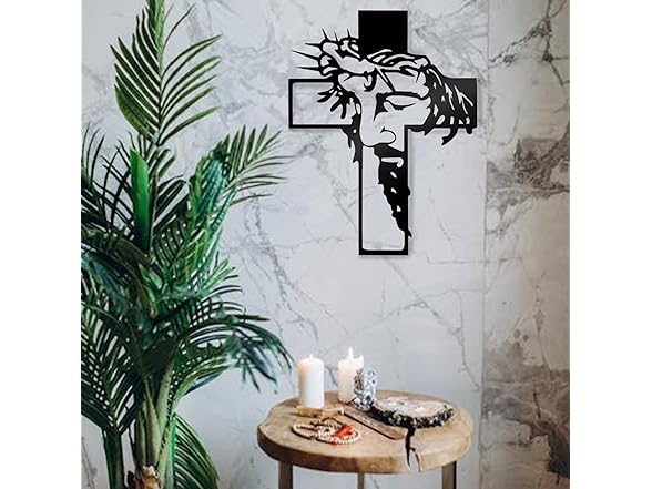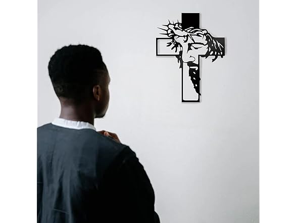 Timeless Design the hollow design of this wall crucifix is not only unique but also deeply symbolic, featuring the iconic image of Jesus within the cross.This exquisite piece serves as a remarkable addition to any home decor style, whether it be modern, traditional, or eclectic. Its thoughtful craftsmanship enhances your interior space effortlessly while creating a harmonious and sophisticated atmosphere that invites contemplation and reflection.As you incorporate this durable piece into your living room, bedroom, entryway entrance wall, doorway, or child's bed area, let it serve as a reminder of blessed faith, love, and joy in everyday life. Additionally, its versatility allows for display on various surfaces such as desks or tables. Large Size: Constructed from high-quality metal with rustic tones that evoke warmth and character, this black Christian wall decor measures an impressive 12.59 inches in length and 9.84 inches in width. Its size ensures that it stands out as a statement piece within any environment—whether hung prominently on a wall or placed strategically among other decorative items—serving as an eye-catching centerpiece that draws attention without overwhelming the surrounding decor.Religious Decorations this crucifix is particularly well-suited for religious ceremonies including Christenings, First Communions, Confirmations, and House Blessings; making it an ideal gift choice for clergy members and educators during Christmas celebrations or other significant occasions throughout the year. A tangible expression of one’s faith that resonates. Versatile & Meaningful Gift. The Catholic crucifix represents an excellent option for various celebratory events such as birthdays, weddings baptisms—and indeed any religious observance where spiritual symbolism is appreciated. Its meaningful presence can enhance moments of joy while serving to inspire deeper connections among family members and friends alike.