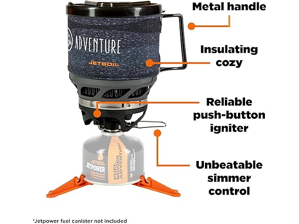 Jetboil MiniMo Camping and Backpacking Stove Cooking System with Adjustable Heat Control (Adventure)