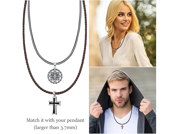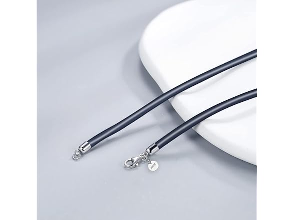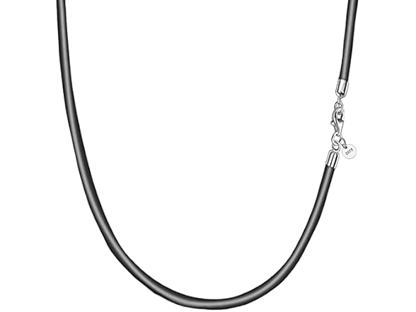 JEVINDA Leather Necklace 925 Sterling Silver Clasp 2.5mm/3mm Braided Genuine Leather Cord for Men and Women 46-61cm optional Chain for Pendant DIY With gift box (24'', Black round)