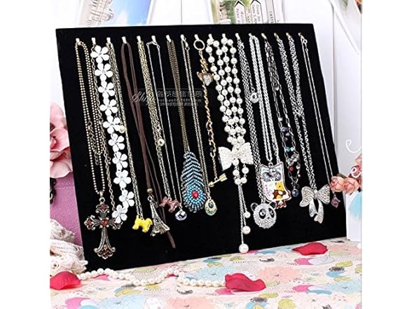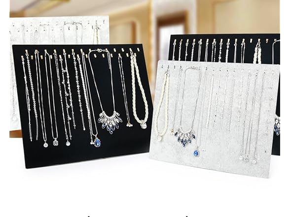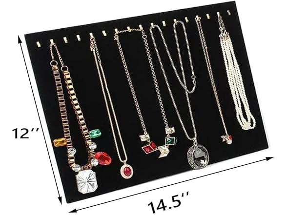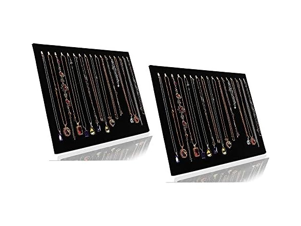 JIFF Velvet Necklace Jewelry Organizer/Tray/Pad/Showcase/Display case (2 pack-Black 17 Hook Necklace Display)