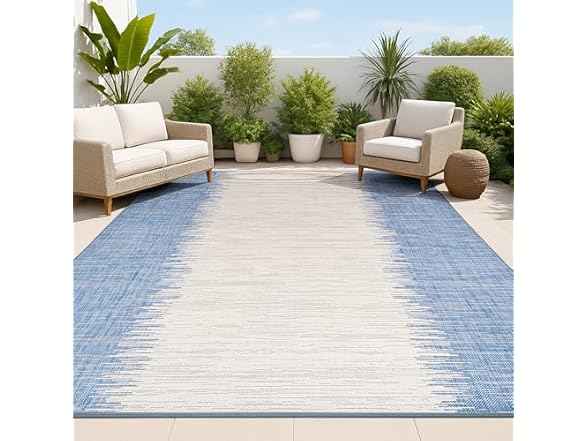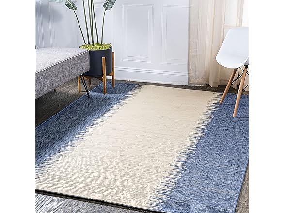 JONATHAN Y Modern Strie' Indoor Outdoor Area Rug 3X5 Blue/Beige, Tavira for Backyard, Patio, Porch, Easy-Cleaning, High Traffic, Pet-Friendly, Non-Shedding
