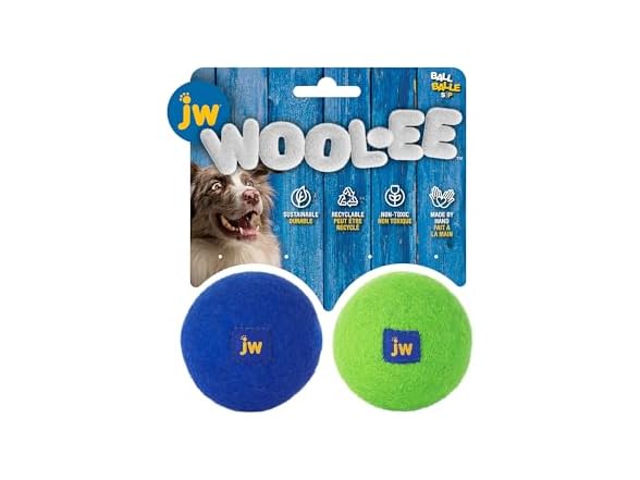 JW Wool-EE Ball Small (2 Pack) Handmade 100% Wool All Natural Dog Toy for Fetch